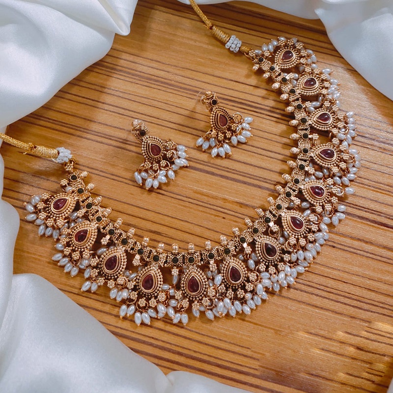 Elevate your style with the Akruti Collection Gold Plated Pota Stone And Pearl Necklace Set. This elegant set features a stunning combination of gold plating, Pota stones, and pearls, making it a perfect accessory for any occasion. With its high-quality craftsmanship and timeless design, this necklace set will enhance your look and make you stand out from the crowd.Note: Image may be vary slightly from the actual
