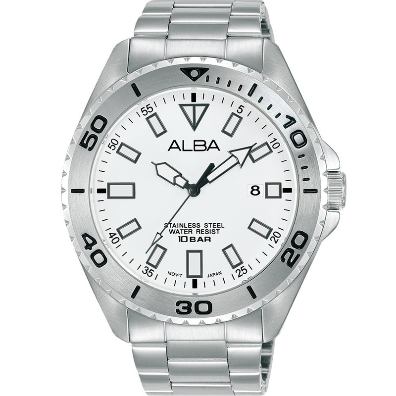 Introducing the Alba AS9Q45X Workman, a robust and practical timepiece designed to withstand demanding environments, featuring a clean white dial.Powered by the Caliber VJ42 quartz movement, this watch ensures accurate timekeeping with a dependable battery life of approximately 3 years. The 44mm stainless steel case provides durability and a bold presence suitable for rugged activities and professional settings.Equipped with a scratch-resistant mineral crystal and a screw-down crown, the watch offers enhanced protection against water infiltration and ensures secure operation in challenging conditions. The date display adds convenience for everyday use, enhancing its practicality.With an impressive water resistance rating of 100 meters, the Alba AS9Q45X Workman is suitable for swimming, snorkelling, and various water sports, making it an ideal choice for individuals who value durability, functionality, and style in their timepiece.- Caliber VJ42- Quartz Powered by a battery – Approx 3 Years Battery Life – 44mm Case Size – Stainless Steel Case – Mineral Crystal – Screw Down Crown – Date Display- 100 Meters Water Resistant