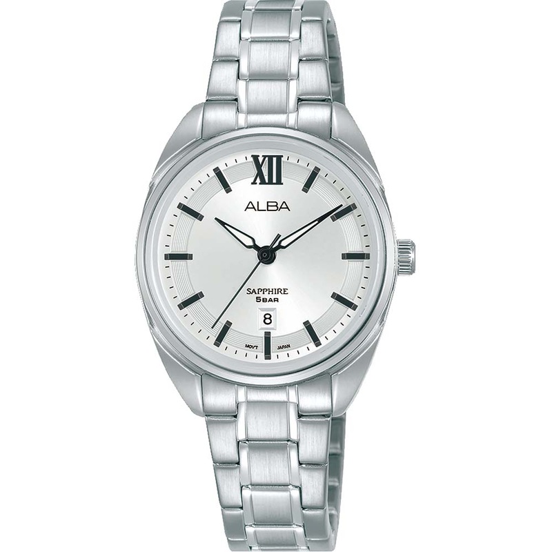 Introducing the Alba Prestige AH7Y59X1, a distinguished timepiece featuring a silver dial adorned with sleek black accents. This watch combines understated elegance with modern sophistication, making it a versatile accessory for various occasions.With a modest 29mm stainless steel case size, the AH7Y59X1 offers a blend of durability and a refined aesthetic suitable for both formal and casual settings. Powered by the reliable Caliber VJ22 quartz movement, the watch ensures precise timekeeping powered by a battery, offering reliability and convenience.Protected by scratch-resistant sapphire glass, the dial maintains clarity and durability, ensuring visibility and resilience against daily wear. A practical date display enhances its functionality, providing added utility for everyday use.With a water resistance of 50 meters, the AH7Y59X1 is suitable for everyday activities and exposure to light moisture. Whether paired with professional attire or worn casually, this Alba Prestige watch exemplifies timeless style and practicality, making it an essential addition to any watch collection.- Caliber VJ22- Quartz powered by a battery – 29mm Case Size – Stainless Steel Case and Bracelet – Pull Out Crown – Sapphire Glass – Date Display – 50 Meters Water Resistant