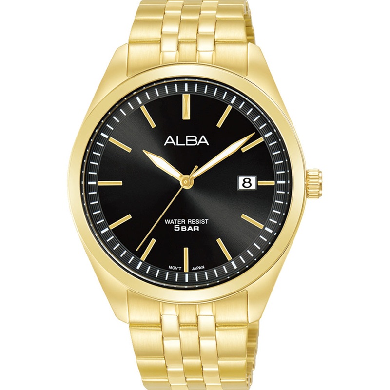 Introducing the Alba AS9S06X Gold Tone Stainless Steel Men’s Watch, a harmonious blend of style and functionality for the modern man. The sleek and sophisticated design features a black dial, elegantly displaying hour, minute, and second hands alongside a convenient date window. With a water resistance of 5 bar, this timepiece is well-equipped for daily wear and casual outings. The watch boasts a durable stainless steel case with a screw case back, ensuring longevity and resilience. The stainless steel wrap bracelet adds a touch of refinement, providing a comfortable and secure fit. The mineral crystal glass protects the dial while maintaining clarity. With a case size of 40mm, case thickness of 8.25mm, and a band width of 20mm, the Alba AS9S06X effortlessly combines modern aesthetics with practical features, making it a versatile accessory for any occasion.