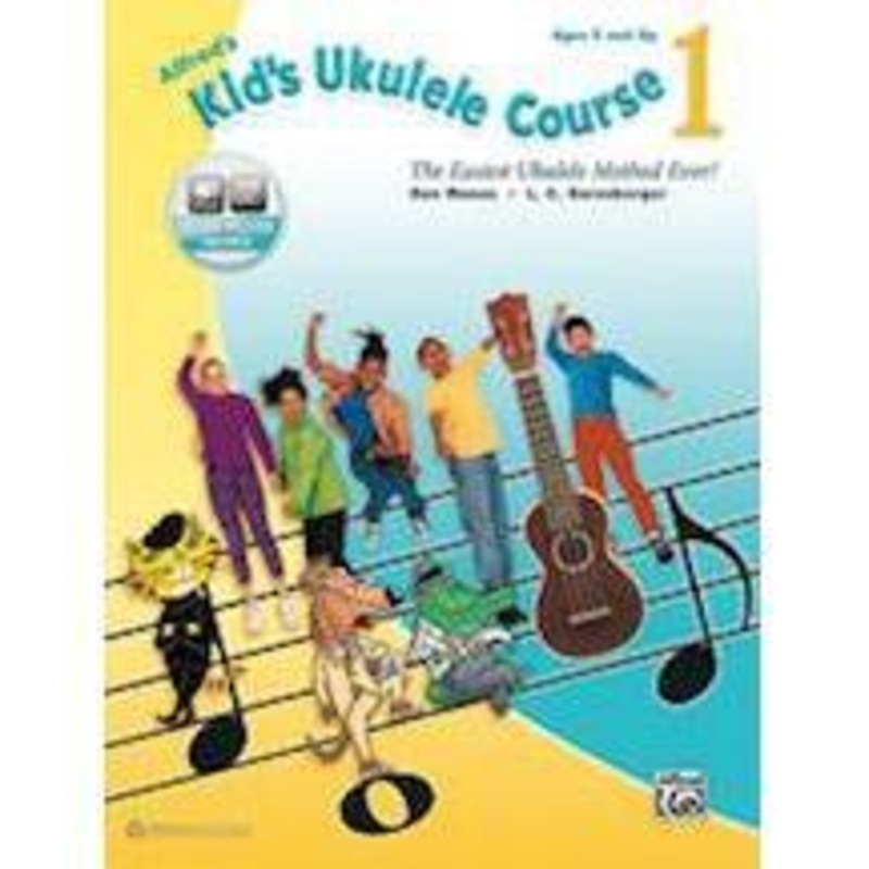 The easiest ukulele method ever for kids ages 5 and up. This fun method teaches you to play songs on the ukulele right away. The accompanying online audio always lets you hear how the music should sound on any computer or handheld device. Three irresistible ukulele experts guide students along—a clever, classical dog, one cool jazz cat, and a friendly alligator who loves the blues. They focus attention by pointing out what’s important on each page and make learning music fun! Parents can be effective guides through this course, even if they’ve never had any musical training. This course is also perfect for the classroom. Songs include “Aloha Oe,” “Over the Rainbow,” “When the Saints Go Marching In,” and more.