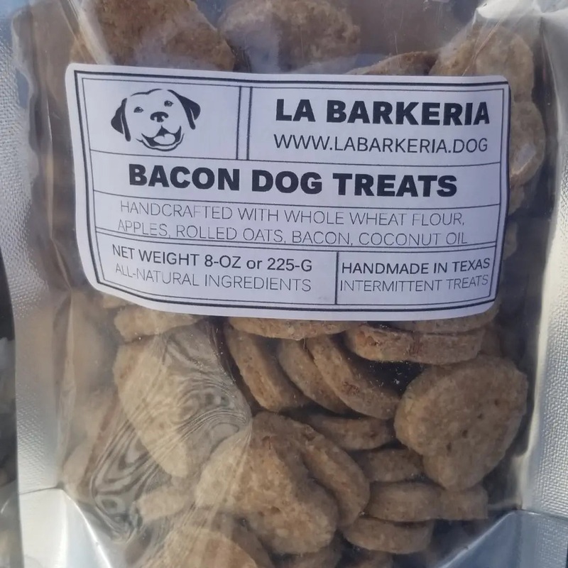 Begging is not a desirable habit, but your dog may not be able to resist once they catch a whiff of these Bacon Dog Treats. Handcrafted with all-natural ingredients and baked in small batches. Crunchy biscuit handmade with whole wheat flour, apples, rolled oats, bacon, and coconut oil. Handmade in Texas 8oz Package Approx. 1.5-2″ Treat