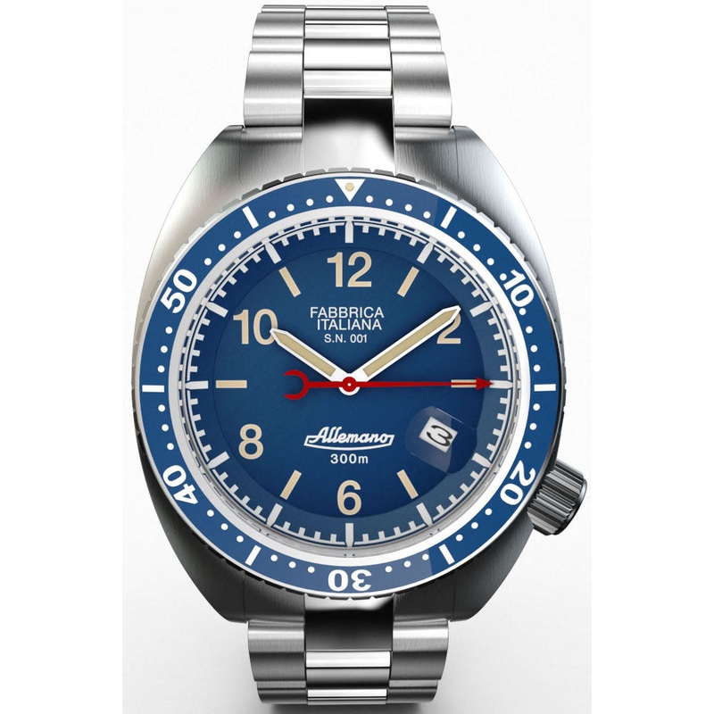 Allemano Watch 1973 Diver Shark Dark Blue SH-A-1973-P-B. Before measuring time Allemano watches dedicated over a century to perfectionate our manufacture of precision mechanics for the creation of pressure gauges, thermometers and dynamometers. Unique timepieces which tell a valuable story and represent an experience for those who choose them.
