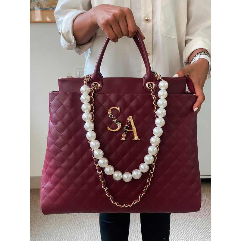 Introducing our versatile tote bag, designed to meet your every need. This spacious travel companion boasts a zippered closure, ensuring the safety of your belongings. With thoughtfully incorporated compartments, it seamlessly transforms from the perfect office companion to an ideal airport carry-on. The personalized touch comes with pearl handles, adding an elegant flair to your day-to-night look. Whether you’re running errands or transitioning from lunch to dinner, this bag is a stylish solution for every occasion. Elevate your hanging-with-girls game with this chic and functional laptop bag that effortlessly combines fashion and practicality.