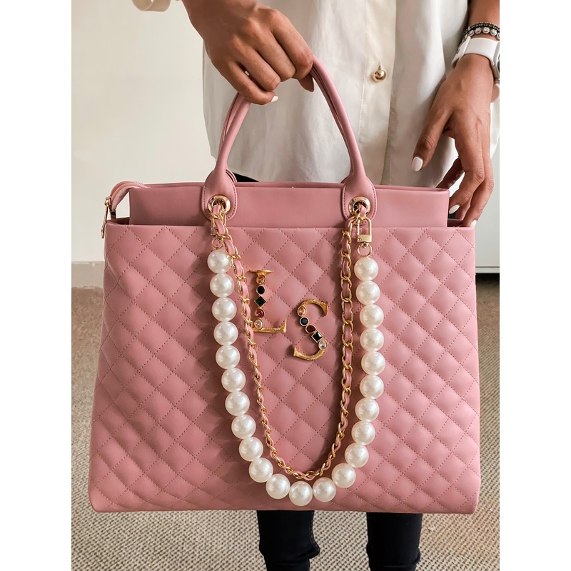 Introducing our versatile tote bag, designed to meet your every need. This spacious travel companion boasts a zippered closure, ensuring the safety of your belongings. With thoughtfully incorporated compartments, it seamlessly transforms from the perfect office companion to an ideal airport carry-on. The personalized touch comes with pearl handles, adding an elegant flair to your day-to-night look. Whether you’re running errands or transitioning from lunch to dinner, this bag is a stylish solution for every occasion. Elevate your hanging-with-girls game with this chic and functional laptop bag that effortlessly combines fashion and practicality.