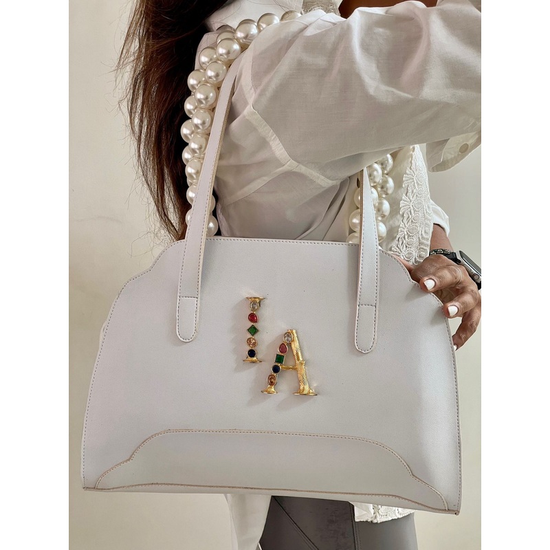 The Alphabeto White Shoulder Bag made from vegan leather is the perfect bespoke bag to take for all occasions. It comes with a pouch and a zip pocket too. This one is sure to complete all your looks, making a statement everywhere you go, be it at brunch with the girls or at the airport.