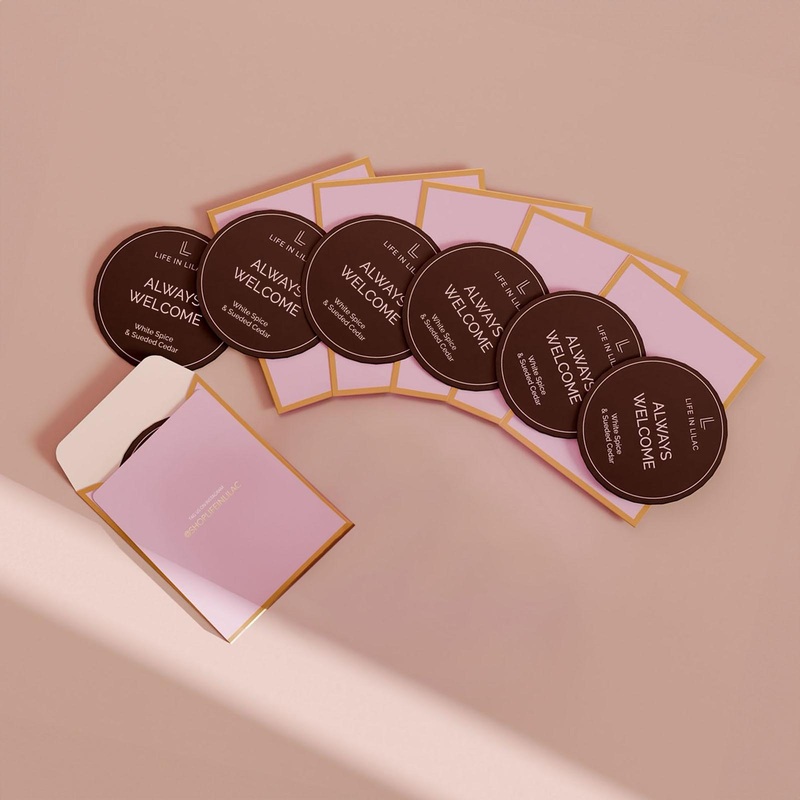 Say goodbye to unpleasant odors and embrace a world of delightful fragrances with our Life in Lilac Air Freshener Bundle! 6 Always Welcome compact and convenient discs designed to effortlessly eliminate unwanted odors, leaving behind a captivating and refreshing aroma in any space you desire. Each disc comes in a beautiful custom envelope.