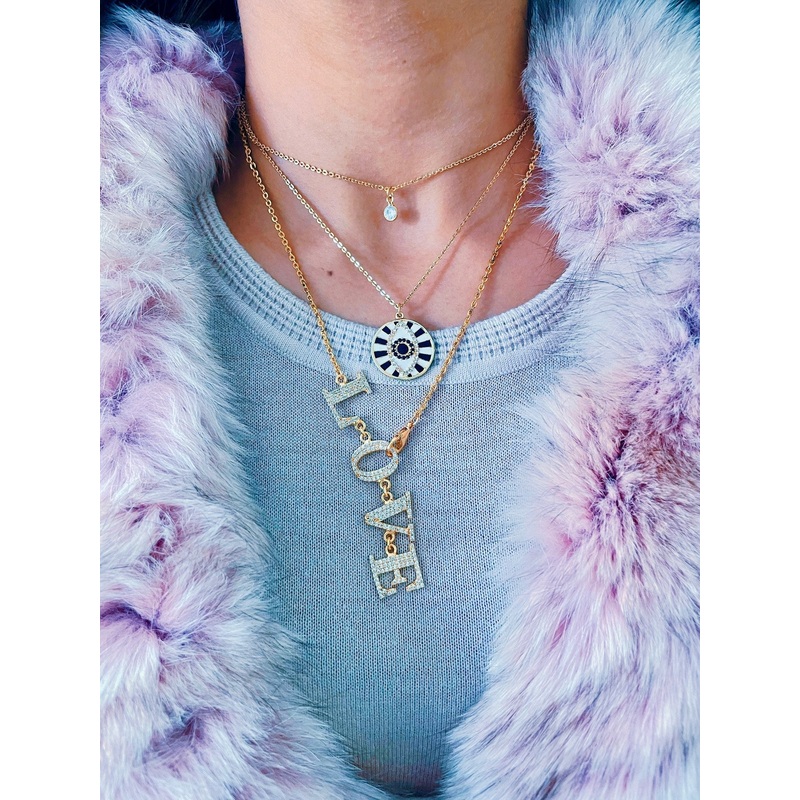 A timeless reminder of LOVE, seal the feeling of affection for yourself or a loved one with the crystal studded Amante Necklace. Style it solo or then layer it with our complimenting Initial Necklace or Sicura Evil Eye Necklace.