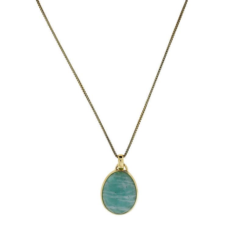 Yellow gold vermeilpendant with faceted oval amazonite gemstone.