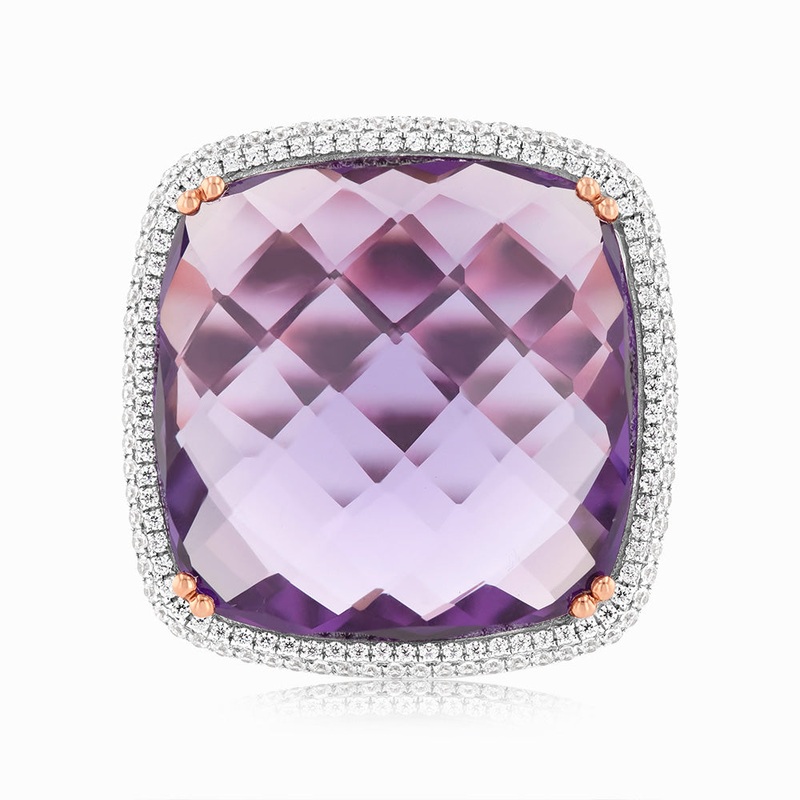 Amethyst & 0.54ct Cubic Zirconia Ring in 9ct Rose Gold