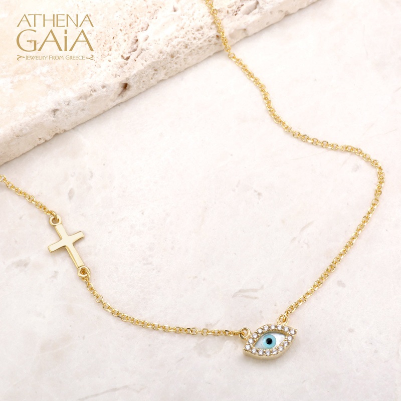 Be the first to review “Angeliki White Matiaki Evil Eye & Cross 14k Gold Necklace”