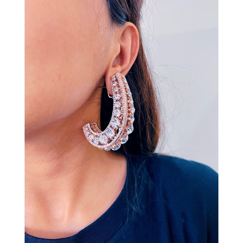 Encrusted withglinting Swarovski in a luxe 24k rose gold plated finish, the Anissa Hoops will make you sparkle & shine wherever you go. Sweep back your hair to showcase thestyle best against your special occasion to wedding looks.