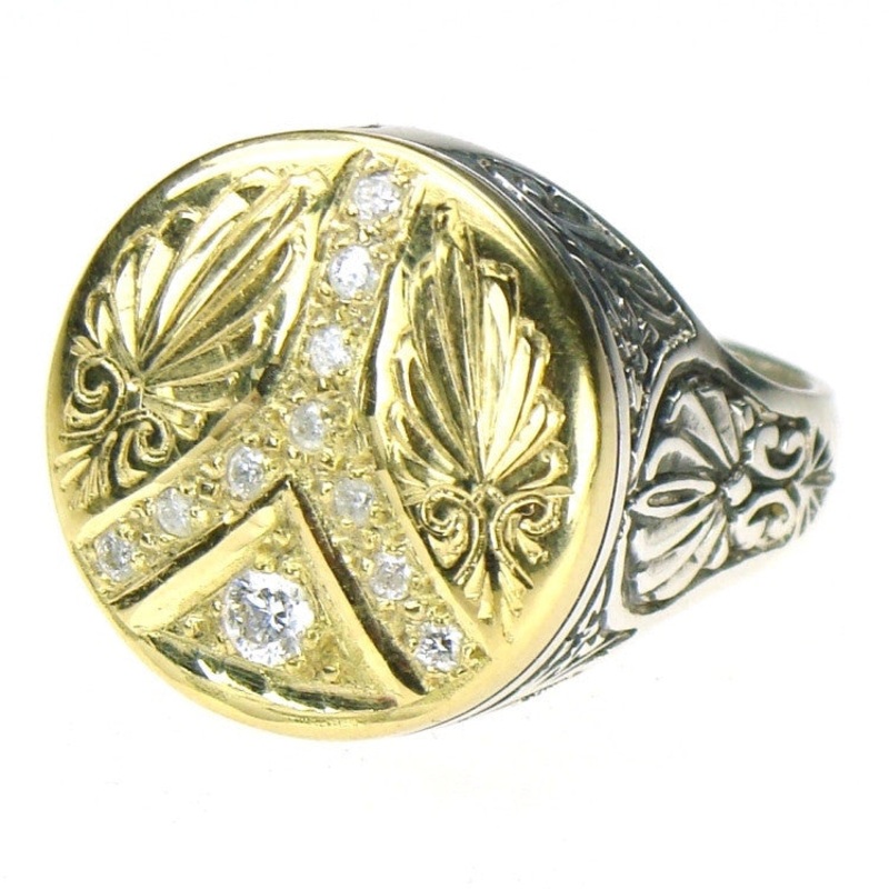 This is a beautifully detailed unisex ring with a comfortable tapered back. Also available with mixed Gemstones: Anthemion Peace Ring