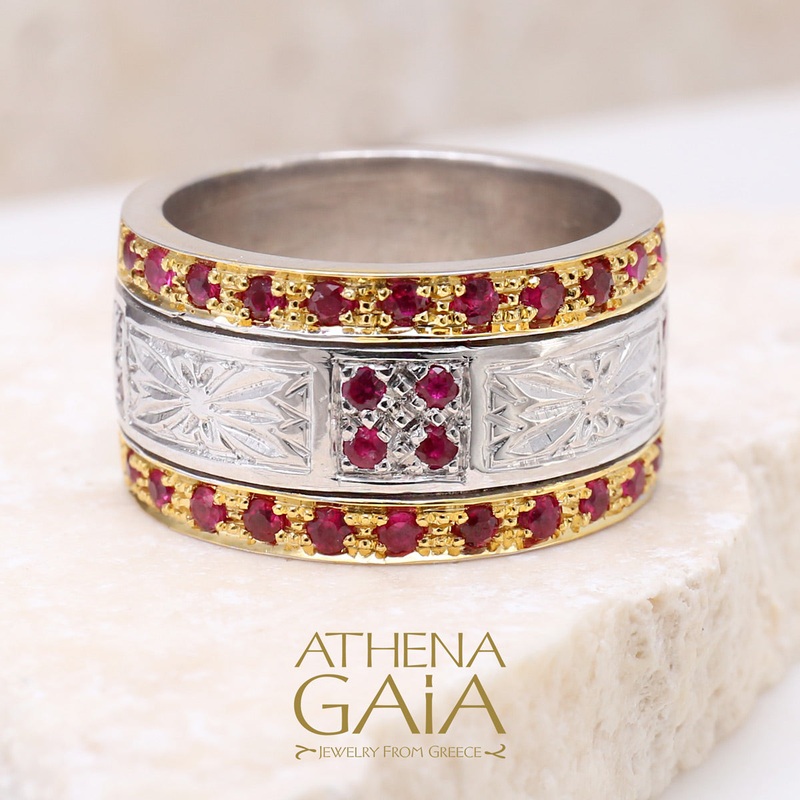 Also Shown (sold separately)Anthemion Single Row Gold Band RingStar Spangled Diamond Bar Band Ring