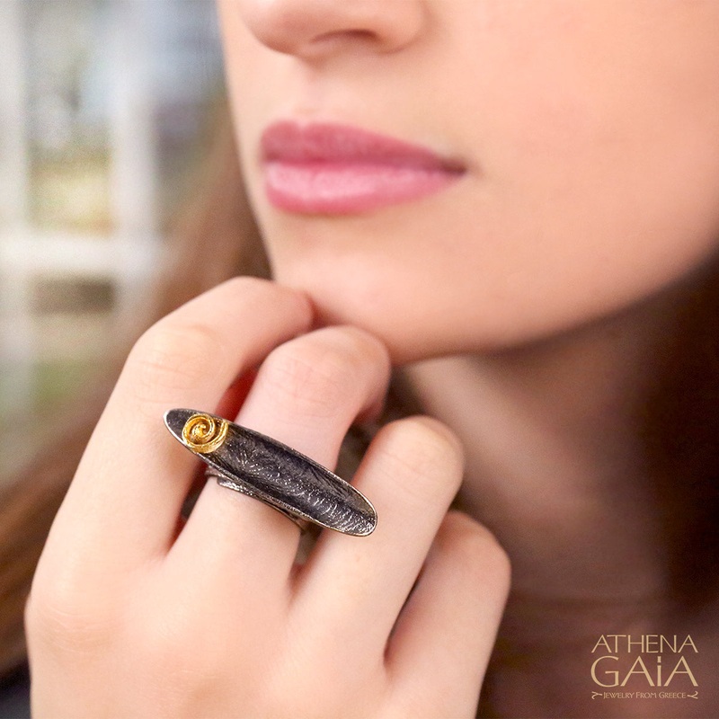 Also Shown (sold separately)Argonaut Triple RingArgonaut FullRingArgonaut Single EarringsSpiral Gravity RingAdditional pieces are available from this page:Click here for more of the "Meander" page