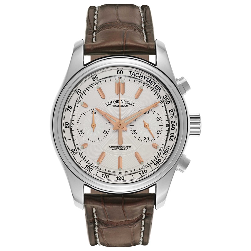 Armand Nicolet, M02, Men’s Watch, Stainless Steel Case, Leather Alligator Strap, Swiss Mechanical Automatic (Self-Winding), 9144A-AS-P974MR2