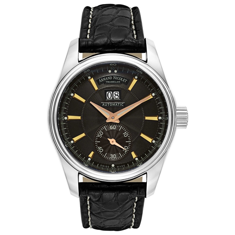 Armand Nicolet, M02, Men’s Watch, Stainless Steel Case, Leather Alligator Strap, Swiss Mechanical Automatic (Self-Winding), 9646A-NS-P974NR2