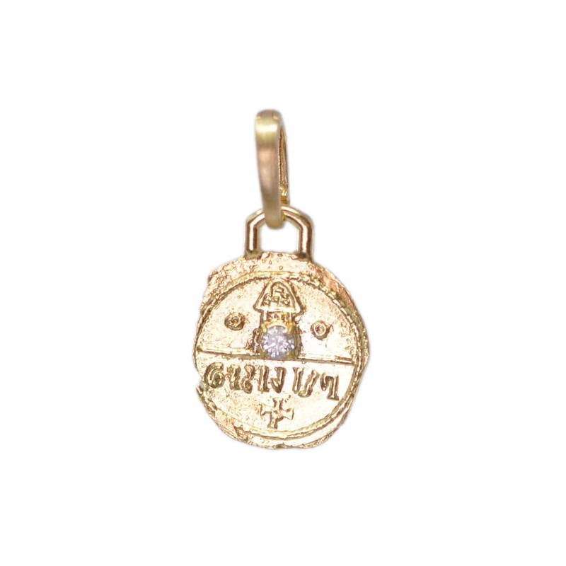 18K yellow gold 23mm artifact medallion coin enhancer on gold bail.