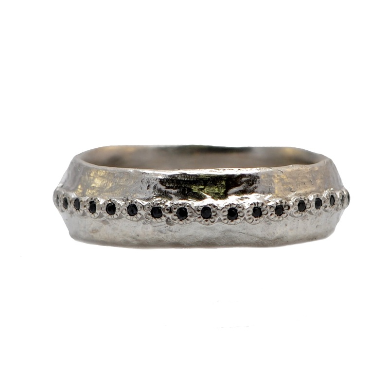 Sterling Silver Artifact Wide Band with Black Sapphires