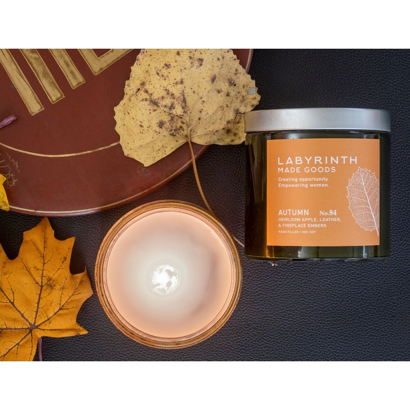Our Autumn No.84 candle takes you to an evening next to a crackling fire, sipping a mug of warm apple cider. Curling up into a leather chair and wrapping up in a blanket, the steam from the mug warms your senses. This aromatic scent defines autumn in the Midwest.