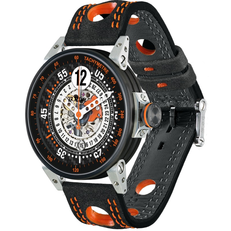 B.R.M. Watches V6-44 Touring Orange. An automatic watch machined in the mass, for motor sports enthusiasts