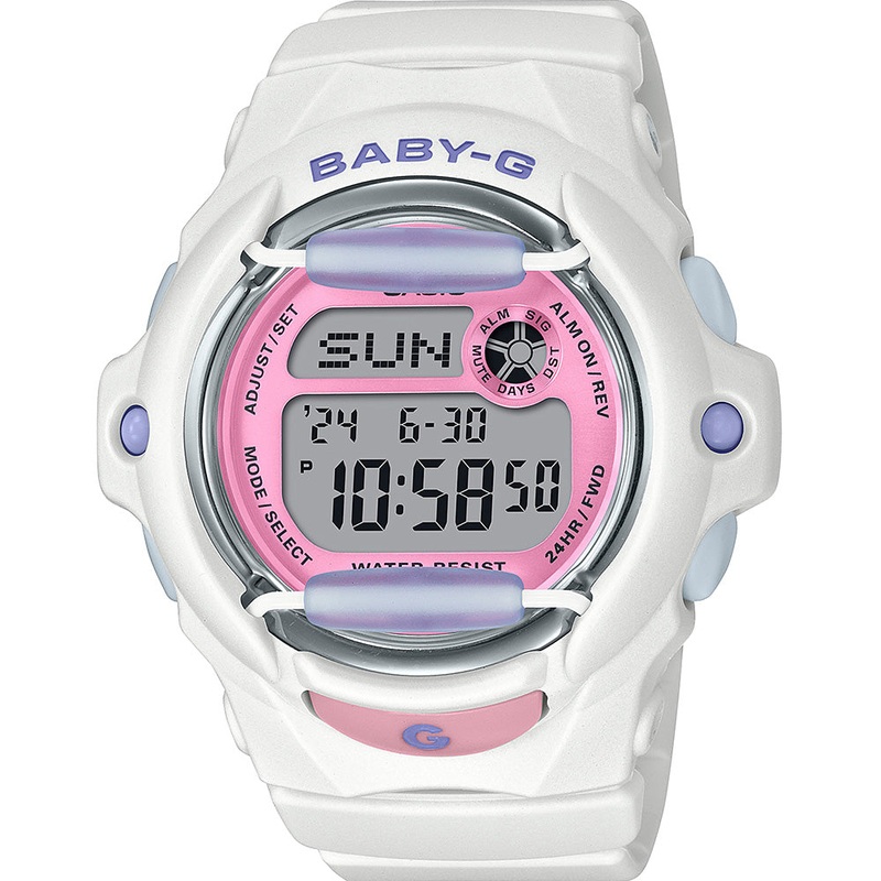 Apart of the Baby-G Playful Beach collection, what a way to take a dive into summer with a playful, colourful, and casual timepiece like BG169PB-7D. The colour scheme in this range adds a pop of colour and playfulness when out having fun on the shores and water. The compact and smooth design of the BG-169 draws inspiration from colours that emulate the beach. Although playful and has its ocean inspired perks, this timepiece is still practical. The shock resistant construction can withstand bumps and scrapes. With the addition of 200 meters of water resistance this sleek watch can be worn in the water while swimming and soaking up those sunrays. Specifications: – 45.9×42.6×16.4 Case Size – 43g Weight – Resin and Stainless-Steel Case and Bezel – Resin Band – Shock Resistant – 200 Meters Water Resistant – Approx battery life 3 Years on CR1616- Mineral GlassWatch Features: – World Time (29 Time Zones) – Stopwatch – Timer – Alarm- Calendar to Year 2099- LED Backlight – 12/24 Hour Format – Accuracy: 30 seconds per month