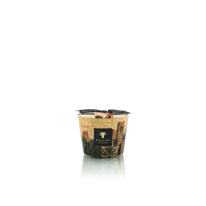 A tribute to the largest palm grove in southern Morocco, Skoura, stretching over 27 kilometers of trails where palm trees, douars and kasbahs punctuate this magical and majestic territory. The kasbah immortalized by Serge Anton almost becomes like a medieval castle, and the photographers artistic work is expressed with a finish similar to aged gray paper. Of the three candles in the Orientalist collection, Skoura is probably the one which comes the closest to the unique texture of a museum canvas.