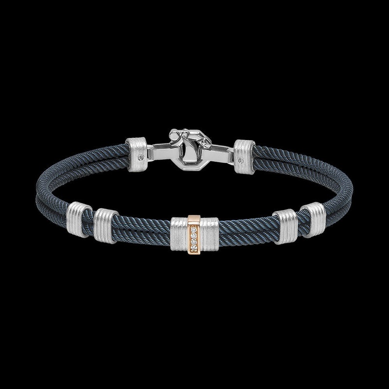 Men’s bracelet in 750 pink gold, 925 silver and 316 stainless steel with PVD treatment. At the centre, a pav of P.Ct 6 white diamonds.