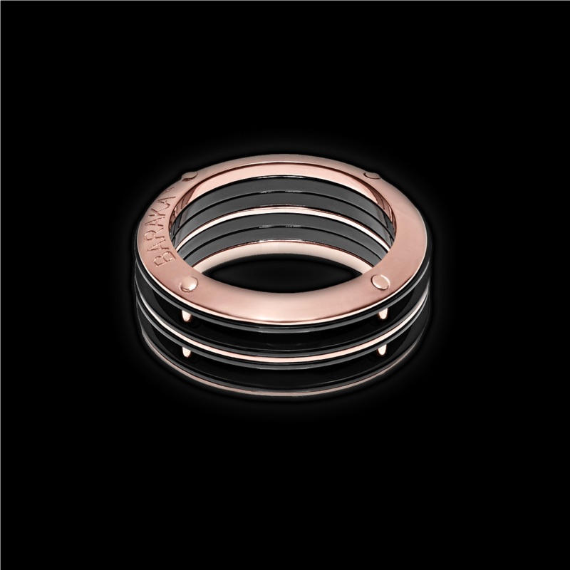 Ring made in 750 Rose Gold and black High-tech Ceramic. The combination of precious materials such as gold and high-tech ceramics make this men’s ring a piece of jewelry with technical and precious appeal. For a man who seeks modern luxury in any detail.