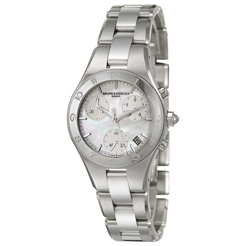 Baume and Mercier, Linea, Women’s Watch, Stainless Steel Case, Stainless Steel and Leather Bracelet and Strap are Interchangeable, Swiss Quartz (Battery-Powered), MOA10012