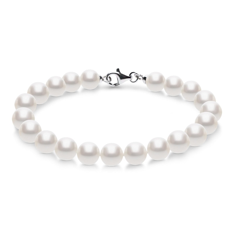 Bead bracelet with genuine freshwater cultured pearlsBeautiful bead bracelet with freshwater cultured pearls.Pearl size: 8,0mm - 8,5mmPearl shape: roundPearl colour and luster: White pearl, shinyPearl type: cultured freshwater pearlLength: 20cmLock materia