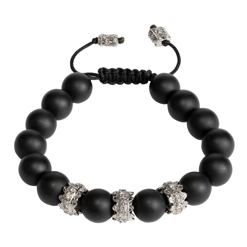BEADED PULL BRACELET WITH BLACK ONYX AND GREY DIAMONDS
