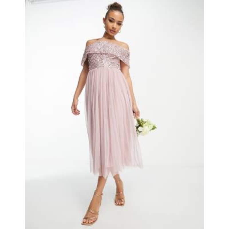 Find the best selection of Beauut Bridesmaid bardot embellished midi dress in frosted pink. Shop today with free delivery and returns (Ts&Cs apply) with ASOS!