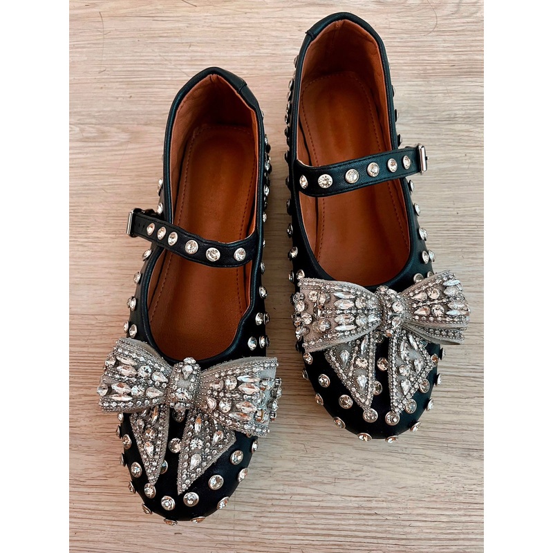 Made from Semi Precious Swarovski Diamond Studs all over the Ballerinas and Semiprecious Swarovski Diamond Embellished Bow.