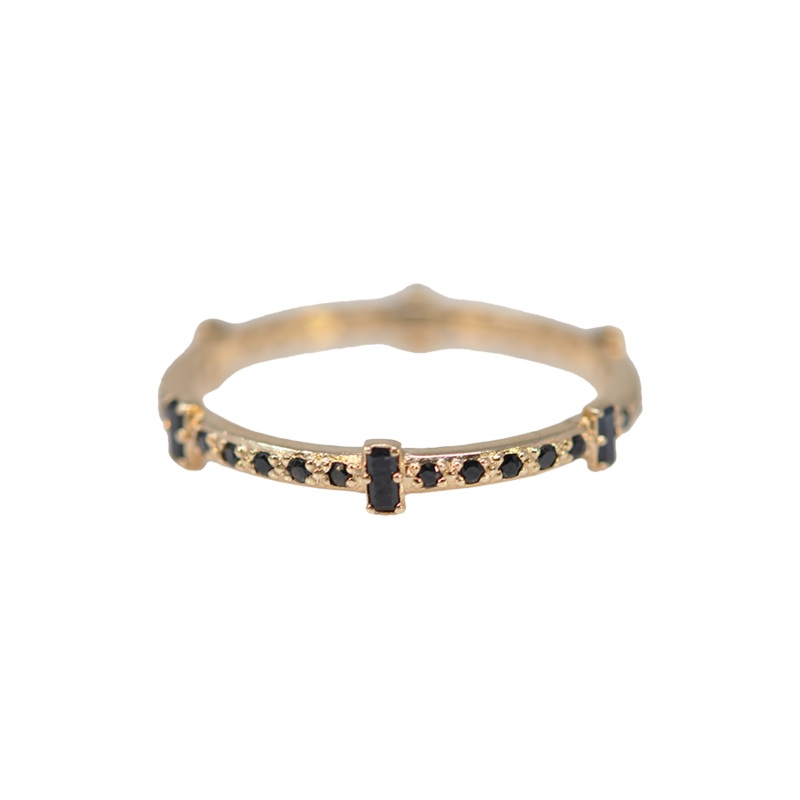 Ring 14k Rose Gold Stack Band with Black Sapphire Baguettes and Black Rectangle Sapphire.