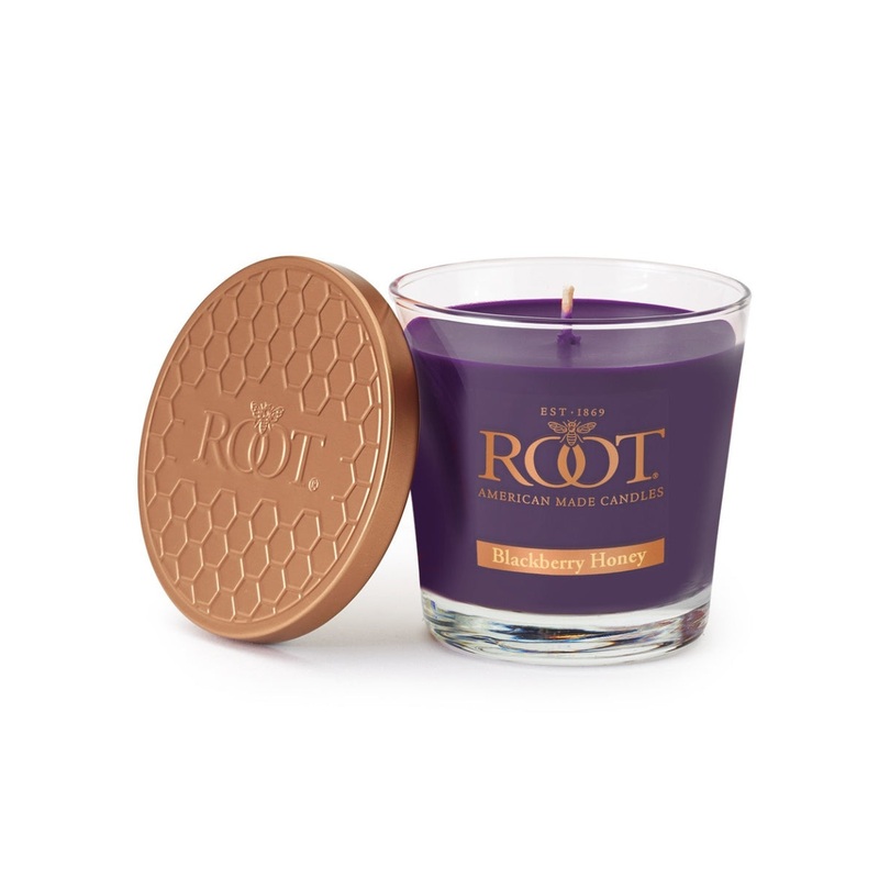 Small Honeycomb Veriglassis made with Root Candlesproprietary natural beeswax blend using fragrances containing essential oilsand an all-naturalfiber wick.