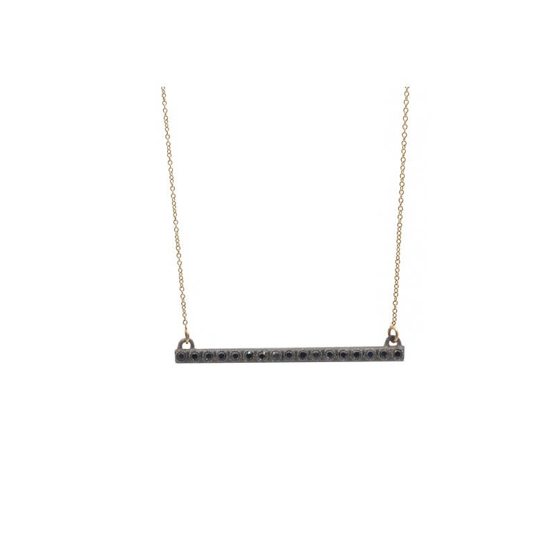 18KYellow Gold and Blackened Sterling Silver Bar Necklace with Black Sapphires. Adjustable at 16, 17 and 18″.