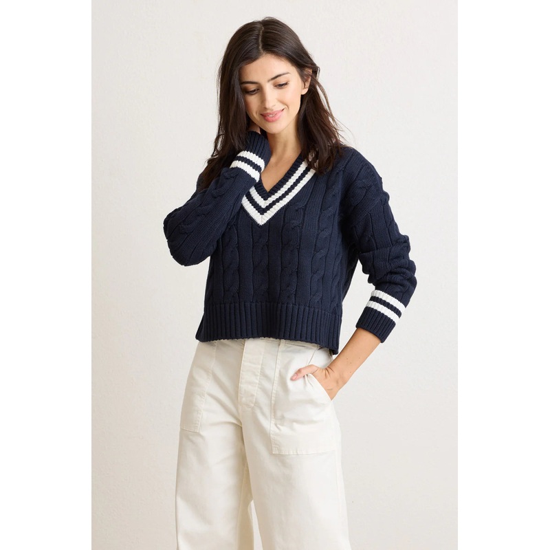 Blair Cable V-Neck Sweater -Navy