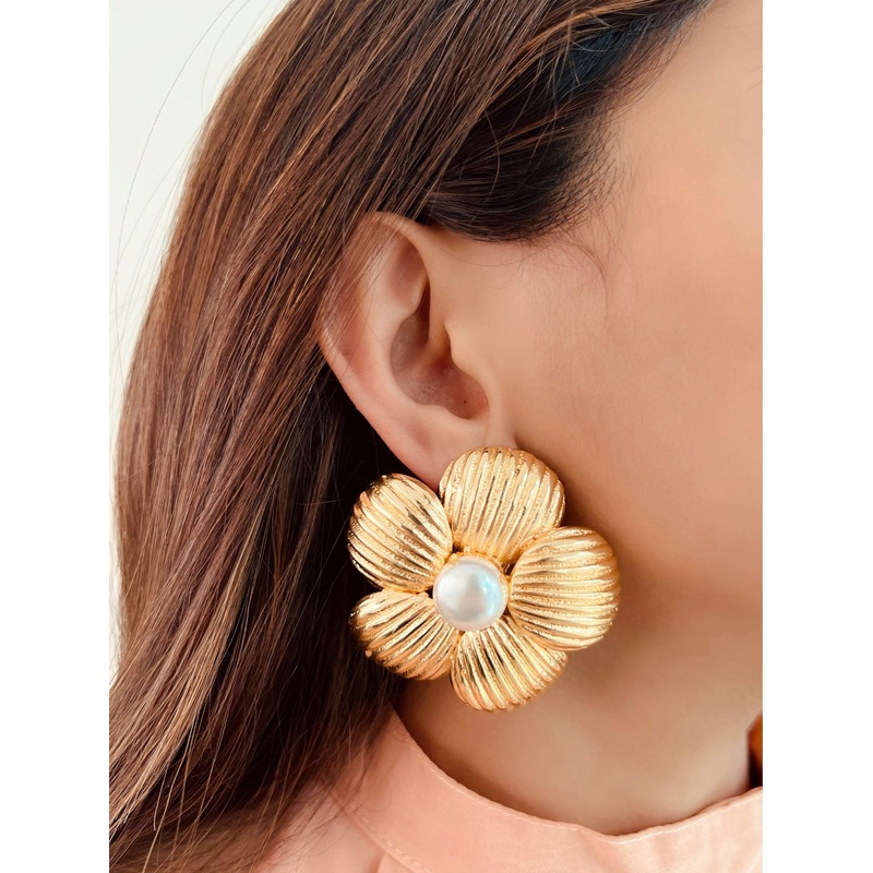 Flowers are every Girl's fav accessory!!Handcrafted with semi-precious Pearls and 24K gold plating, The studs are sure to give a mystical & elegant touch to every ensemble.Style it with a contemporary outfit or your favourite Indian look, either way, this