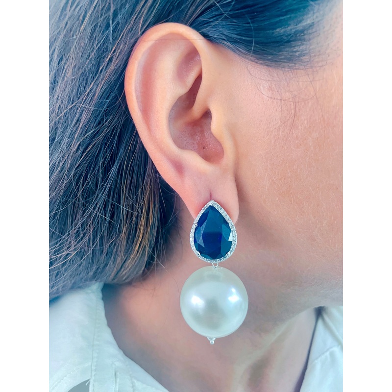 The Blue Pearl Drop Earrings are the statement hoops you need !!!Finely hand-crafted with semi precious stones, this earring is sure to steal the spotlight with its intricate work and plating shimmer. These earringswill give your Western ensembles a flawlessly beautiful look.