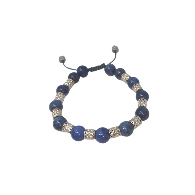 Beaded BraceletwithGunmetal Sterling Silverand10x10 mm Round Smooth Sodalite.
