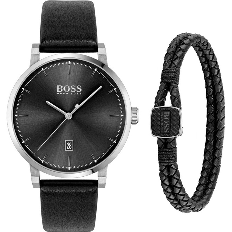 Boss Watch Confidence Leather Bracelet Set 1570145. The Boss collection of fine wrist watches are elegantly designed timepieces which are at the very pinnacle of quality. Time is an elemental and eternal component of the universe.