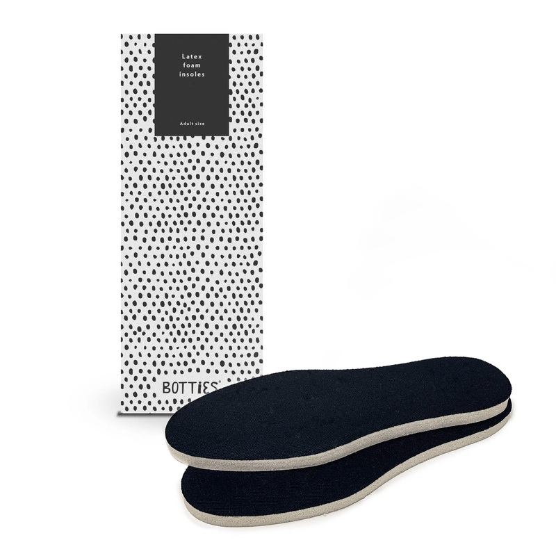 Natural latex foam insoles/polyester top layer, 10mm thick.comfortable footbed thanks to soft latex paddingadapt to the individual foot shapesweat-absorbing and breathableSuitable for the Botties all-round solePlease refer to our size chart in the image ga