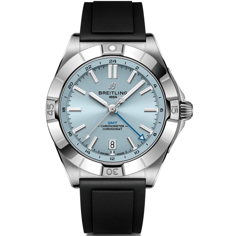 Breitling Watch Chronomat Automatic GMT 40 P32398101C1S1. The Chronomat Automatic GMT 40 is Breitlings tribute to travel, not only for its dual time zone display, but also because of its easygoing aesthetics. Subtle dial colors, combined with an all-steel case and bracelet, work with any wardrobe. Meanwhile, the tone-on-tone 24-hour scale lets the red GMT hand speak for itself. The Breitling Caliber 32 powers the GMT complication. Its 24-hour scale lets the user track a second time zone and know at a glance whether its day or night, while the onion crown (a classic Chronomat feature named for its fluted-dome shape) allows for easy adjustments. As an all-purpose sports watch, meant to cross over between Breitlings air, land and sea universes, the GMT 40 has an impressive 200m water resistance. Known as a watch for every pursuit, the Chronomat mission is truer now than ever because of the GMT 40s practical size and understated style. Sturdy enough for the gym, yet smart enough for black tie: If theres one watch to travel with, this is it.