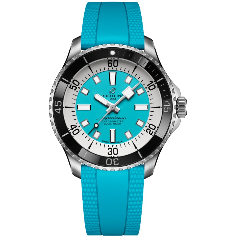Breitling Watch Superocean III Automatic 44 A17376211L2S2. Performance and style for all your water-based pursuits. In the 1960s, the new sport of scuba diving was all the rage. For divers, timing was everything, and Breitling set out to give them the most clear-cut dive watch possible by eliminating any feature that didn’t support their lifesaving needs underwater. This pared-down watch was named the Slow Motion. What remained were clean lines, chunky luminescent indexes, squared-off hands and a high-contrast dial ring, all aimed at maximum legibility. Practical, yes. But what people really fell in love with was the look.