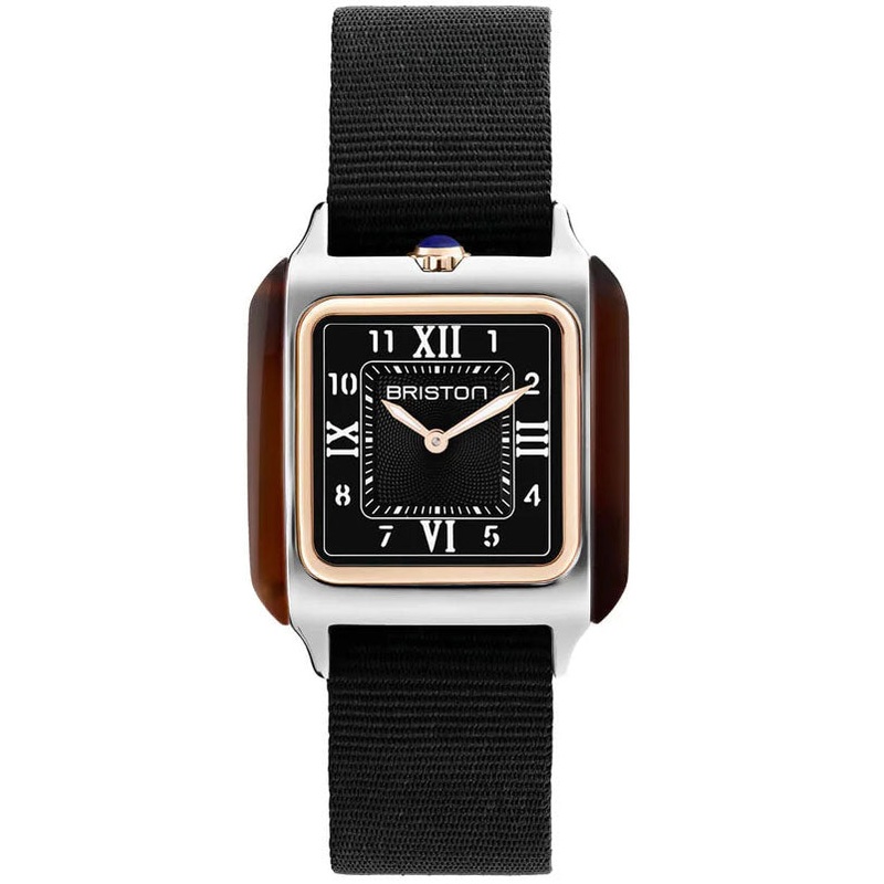 Briston Streamliner Kennedy HM Black Watch 252030.PRA.T.1.NB. The Streamliner Kennedy collection perfectly blends modernity and heritage. The watch features a refined square case with acetate sides, symmetrical lines and a crown at twelve o’clock (except for the chronograph model) adorned with a lapis lazuli cabochon. Its name evokes the timeless elegance and casual, tribute to the preppy style of the famous American family.