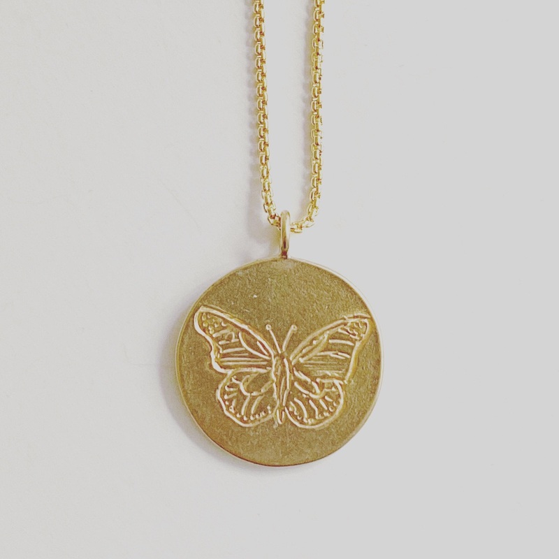 Brass Butterfly coin necklace inspired by summer season in Colorado.