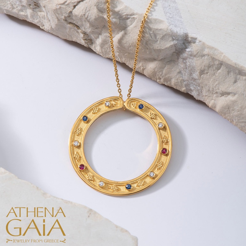Byzantine Embroidery Circle Pendant with Necklace (Large)