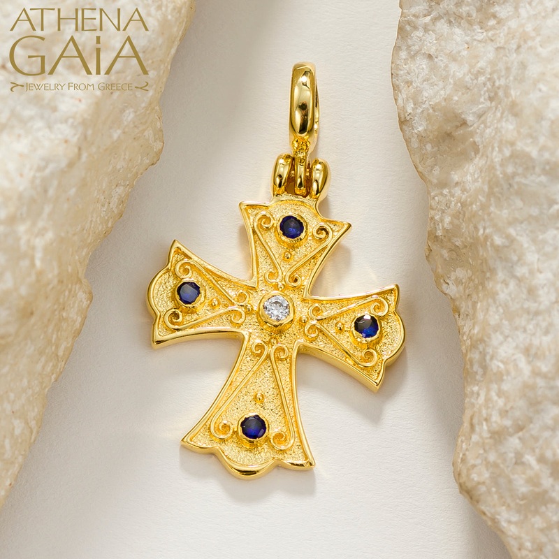 Available in yellow, rose, or white 18k gold, this Byzantine-Style Greek Cross exudes elegance and sophistication. Perfect for baptisms, special events, or daily wear, it’s a timeless piece to add to any collection. Whether for a baptism or daily wear, this cross comes in white, yellow, or rose gold, providing a versatile and stylish option for any wardrobe.