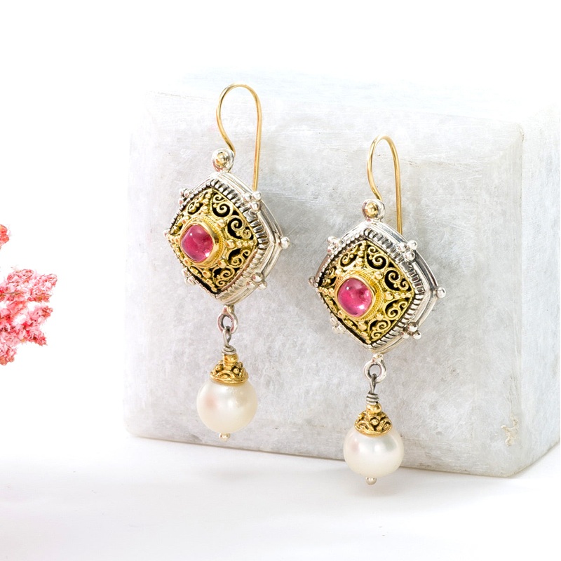 R8295873Byzantine Long Earrings with Stones and Pearls